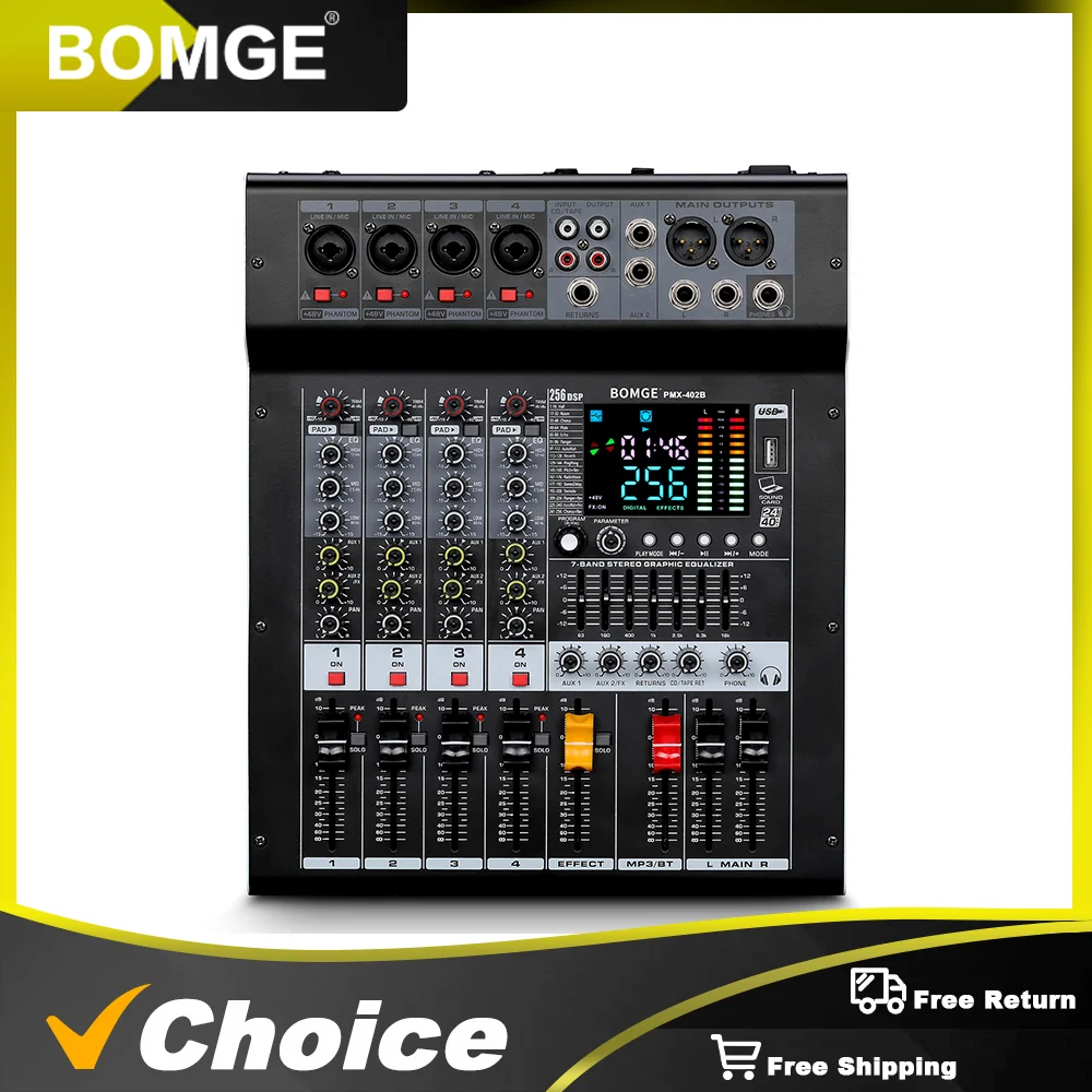 8 Channel Professional Audio Mixer Console Built-in Digital Sound Card for Computer Smartphone Singing Music Recording