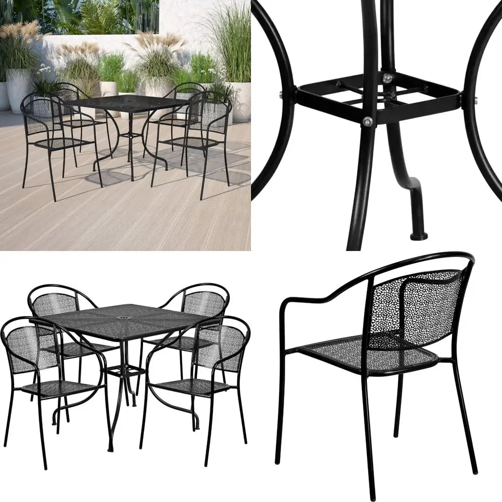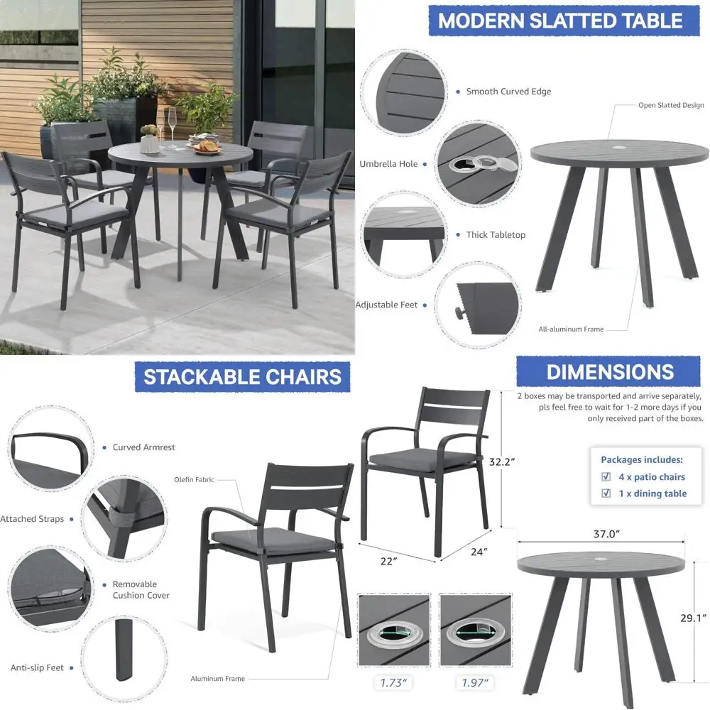5 Piece Round Outdoor Dining Set, Relaxing HDPE Outdoor Table And Chairs With 105° Ergonomic Backrest, All-Weather Patio Table