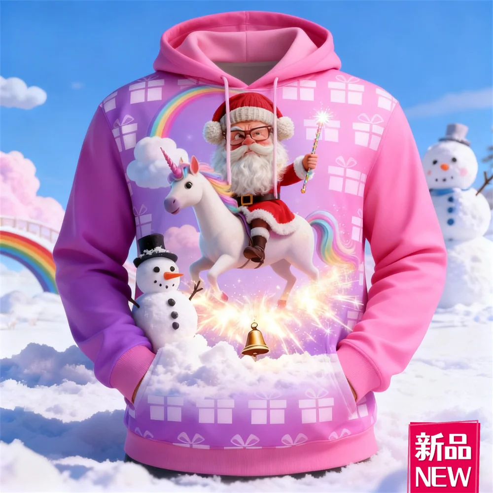 Autumn Winter Santa Clause Graphic Hoodies Sets 3D Print Funny Men's Women's 2-Piece Set Fashion Casual Unisex Christmas Clothes