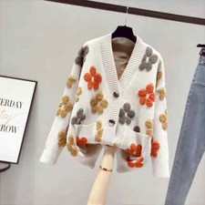 Spring and Autumn New Women Knitted Long-sleeved V-neck Sweater Cardigan Jacket