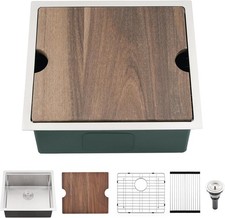 RV Kitchen Sink Undermount Bar 17.83"*12.8" Stainless Steel Single Bowl w/ Cover