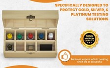 Handcrafted Bamboo GTE Acid Test Kit Storage Box – For Gold, Silver, Platinum. Protect your jewelry testing tools and keep your acids fresh with thispremium handcrafted bamboo storage box. THIS DOES NOT INCLUDE THE ACID OR STONE- This is just for a storage box, no acids, stones, or accessories included.
