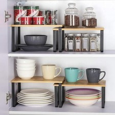 Stackable Design: Our stackable kitchen storage shelves allow you to customize your storage space. Versatile Storage Solution: This 2PCS Cabinet Shelf Organizer set is designed for maximum versatility, making it perfect for your kitchen counter, cabinet, or pantry.