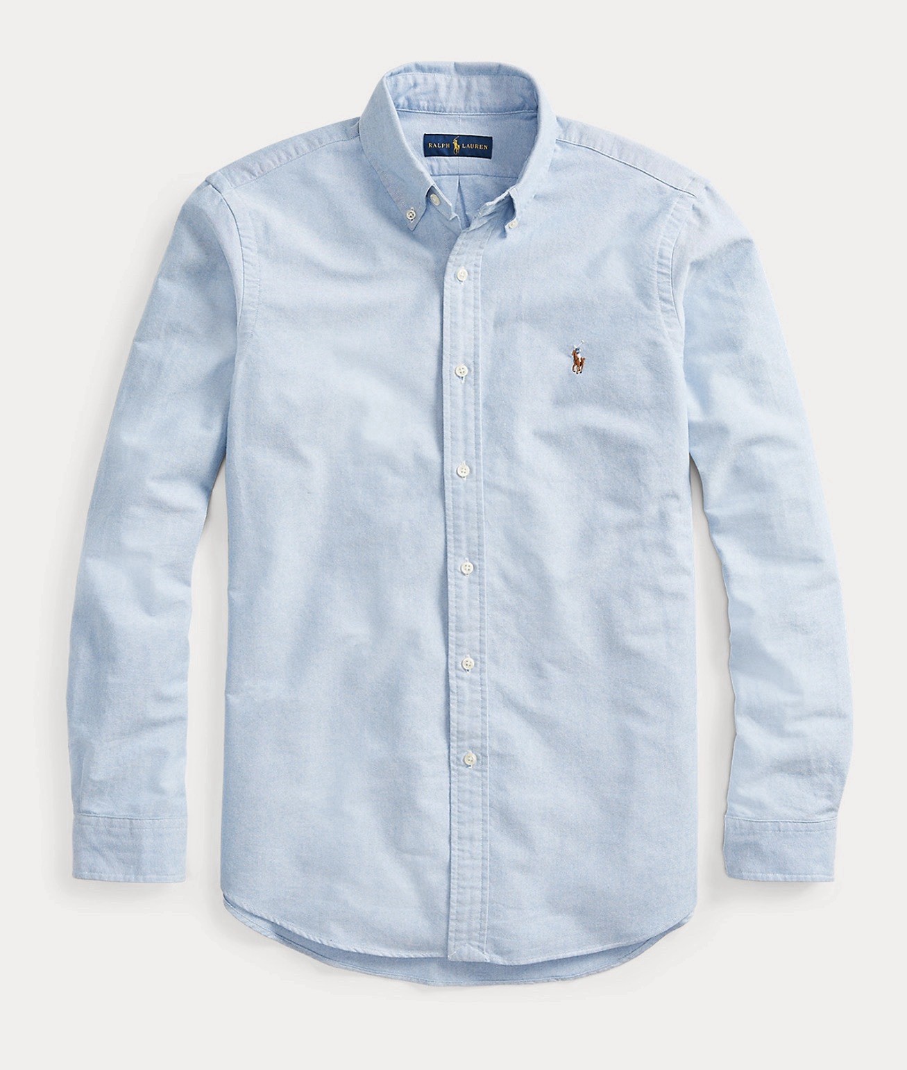 Button-down collar. Buttoned placket. Classic Fit: Cut fuller through the chest, waist, and sleeve, with a lower armhole. Split back yoke with a box pleat ensures a comfortable fit and a greater range of motion.