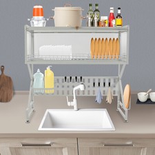 2 Tier Over The Sink Dish Drying Rack w/ Utensil Holder Space Saver for Kitchen