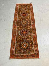 Antique Oriental Hand-Knotted Wool Runner Clay/Navy Blue/Ivory 3'11" x 10'