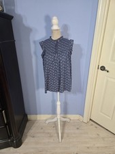 Matilda Jane Large Blouse Blue Smocked Ruffle Floral Top Sleeveless Boho | ✔ Check At Store | $14.50 |