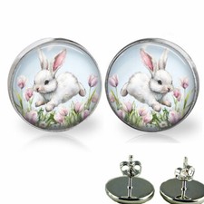 Pink Tulip Flower Garden Hopping Bunny Rabbit Stud Earrings Spring Time Jewelry | ✔ Check At Store | $14.95 |