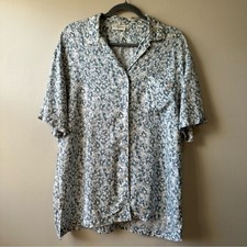 Bright floral print brings instant vacation energy. Lightweight, breathable, and sharp—ready for sunny weather and good vibes. Multicolor floral hibiscus and palm print. Across Shoulders: 17.75 in.