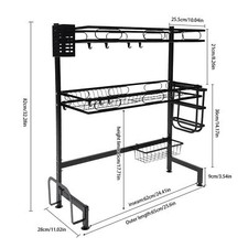Specification Color: Black Style: Modern Martial: Carbon Steel Shape: Rectangular Assembly Required: Yes Number of Shelves: 2 Process: Baking Varnish Mounting Type: Over Sink/Kitchen Countertop Load-bearing(Each Tier): 10kg/22.05lb Product Inner Length: 82cm/32.3in Top Tray Width: 25.5cm/10.04in Dish Net Spacing: 2cm/0.79inch Bowl Net Spacing: 4cm/1.57inch Overall Product Size: 85*28*82cm/33.5*11.02*32.3inch Package Size: 83*28*13.5cm/32.68*11.02*5.31inch Guardrail Height: 6cm/2.36inch Gross Weight: 4.4kg/9.7lb Net Weight: 4kg/8.82lb Package Included 1*2-Tier Over Sink Dish Drying Rack 1*English Installation Diagram All Accessories for Assembly.