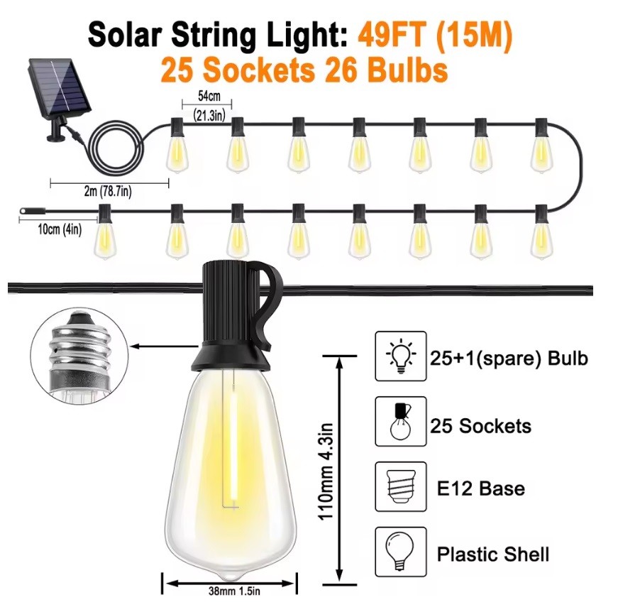 Each string supports end-to-end connections of up to 13 strands, giving you flexibility to extend your lighting setup as desired. 👍【Versatile & Ready-to-use】Perfect for both indoor and outdoor settings, these waterproof string lights suit spaces like patios, porches, bedrooms, decks, tents, umbrellas, and more.