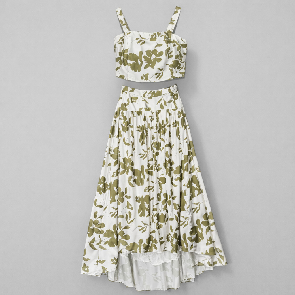 •Color(s): Ivory, olive green floral print. Refer to the actual item photos for exact color, fit, and condition.