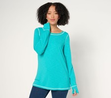 Fashion Women's Top Sz XS Slub Knit Bateau Neck Long Slv Blue A673921