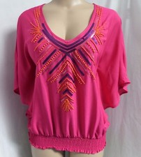 This tuck-and-release TENCEL™ top features rich desert-flower embroidery on the front and center back. The natural-touch fabric drapes easily with a flattering shape enhanced by bust darts and a curved hem.
