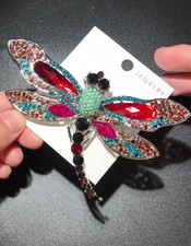 Red/Green/Blue/Pink/Clear Crystal Big Dragonfly Insect Brooch Pin
