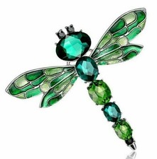 Green Enamel Crystal Rhinestone Large Dragonfly Brooch Pin