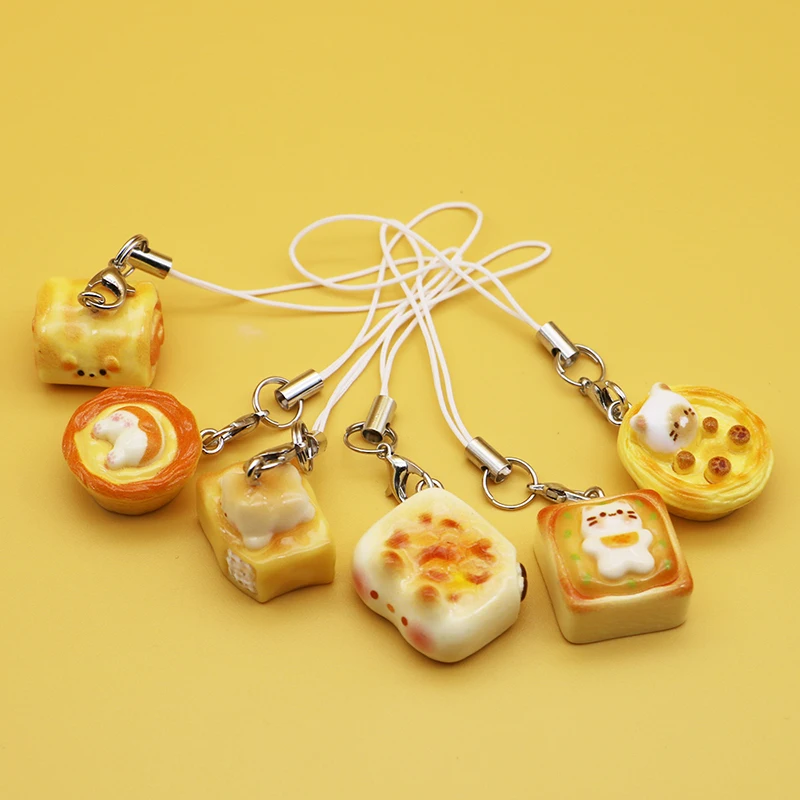 Fashionable Cartoon Cute Cat Bread Phone Charm Vintage Cell Phone Charms for Girls Boys New Phone Strap Lanyard Fashion Keychain