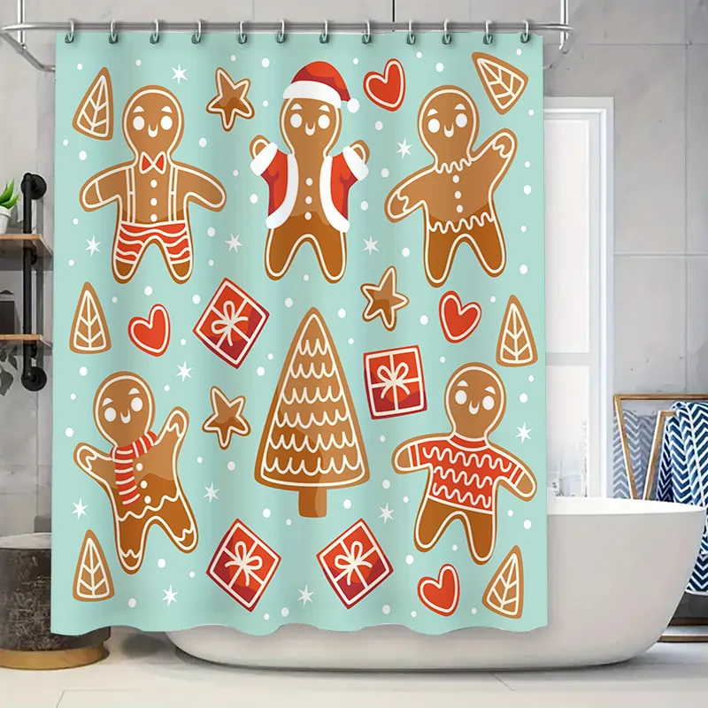 GAEDelightful Gingerbread Christmas Shower Curtain Festive Decor for Your Bathtub Perfect Gift Idea! (Blue)