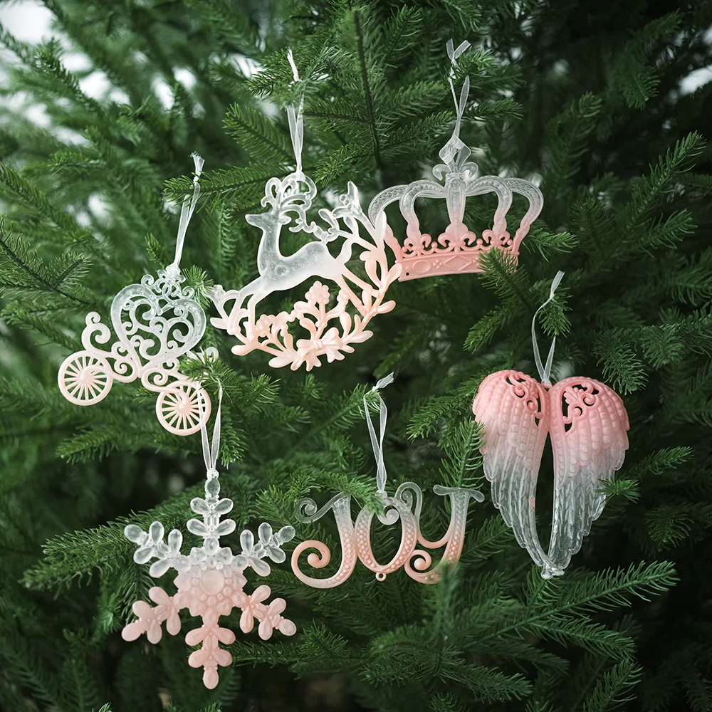 2024 Christmas Pink Elk Xmas Tree Pendant Transparent Wing Deer Snowflake Christmas Supplies Navidad Party Home Decoration