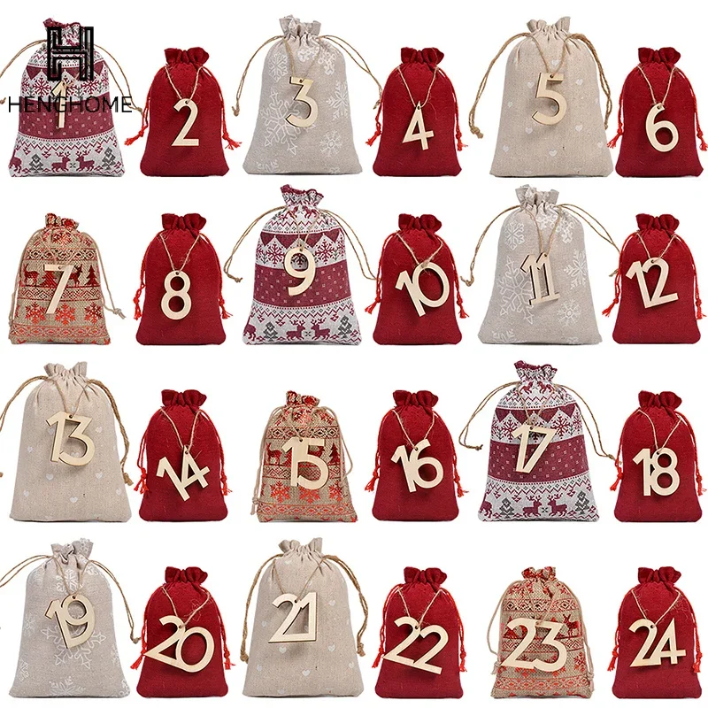 Christmas Advent Calendar Bags 24 Days Countdown Calendar Burlap Bags Drawstring Gift Bags For Adults And Kids DIY Candy Bags