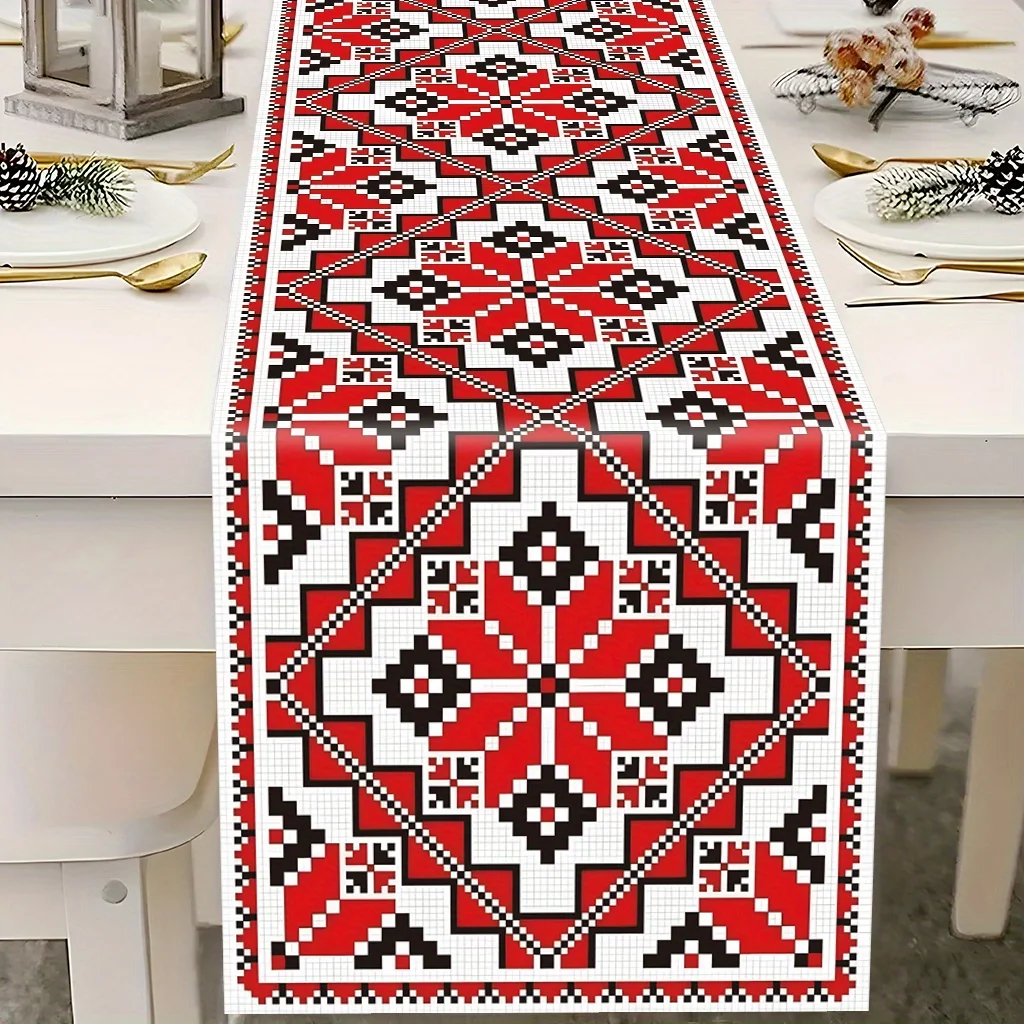 Ethnic Pattern Table Runner Polyester Fiber Geometric Red Black Design Decorative Table Cloth for Dining Table Kitchen Party