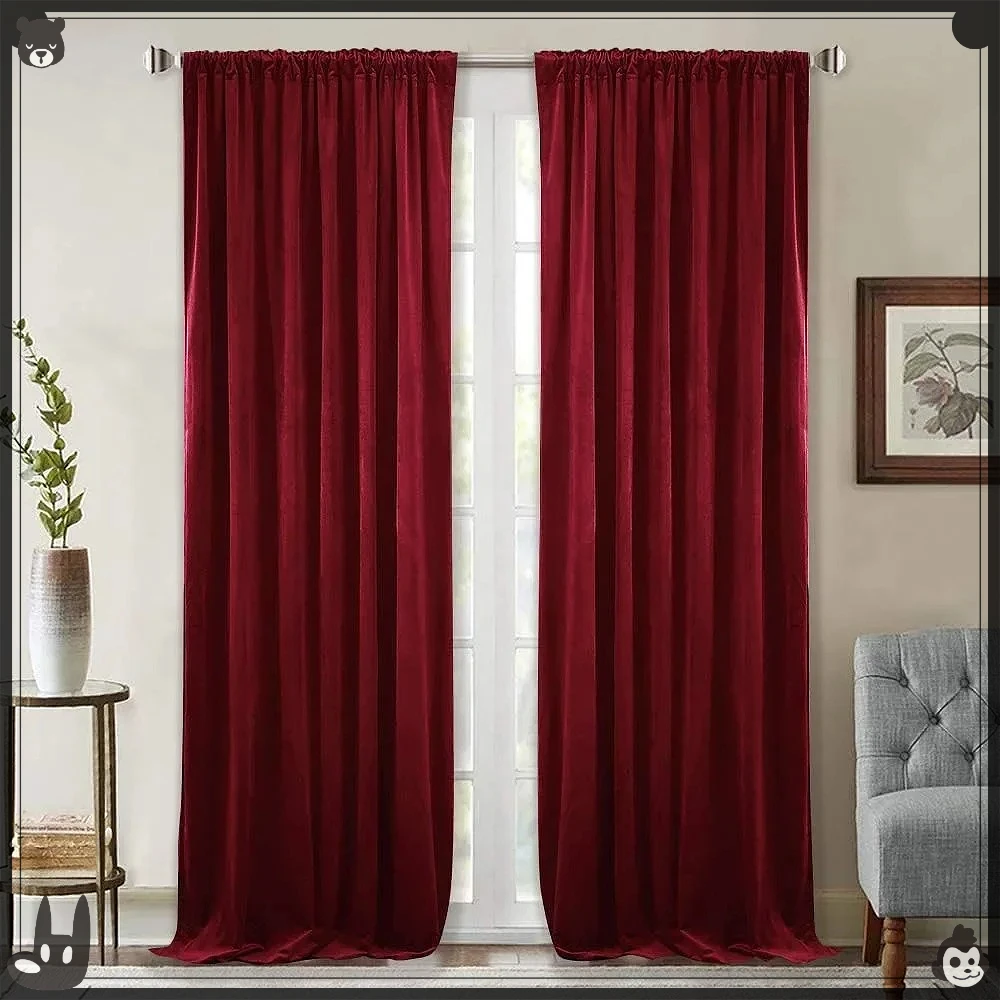 Red Velvet Theater Curtains Super Soft Insulated Velvet Curtains for Living Room Holiday Decorative Curtains for Master Bedroom