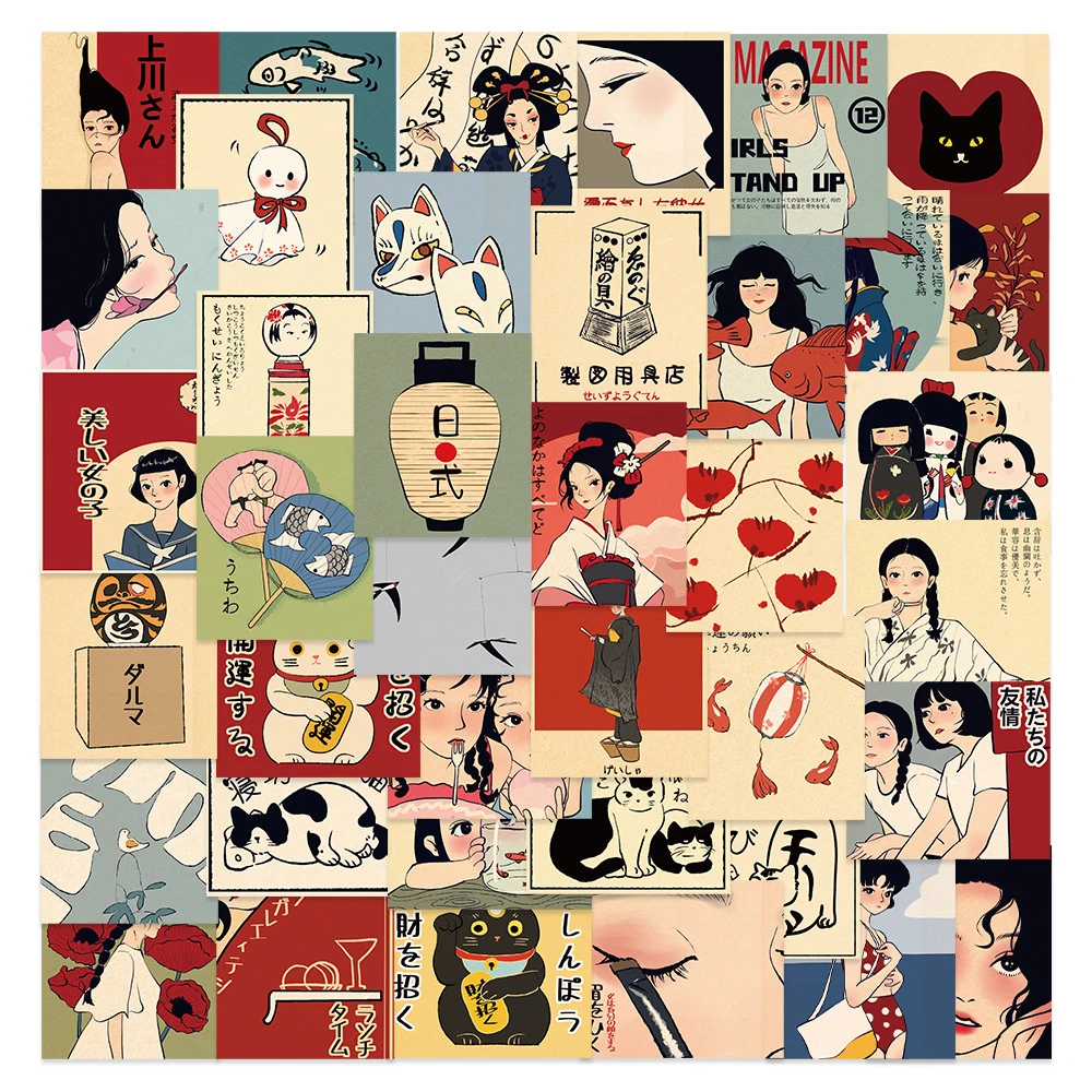 10/30/50pcs Classic Japanese Style Culture Stickers Cute Spring Day Cartoon Sticker Laptop Water Bottle Phone Kawaii Girl Decals