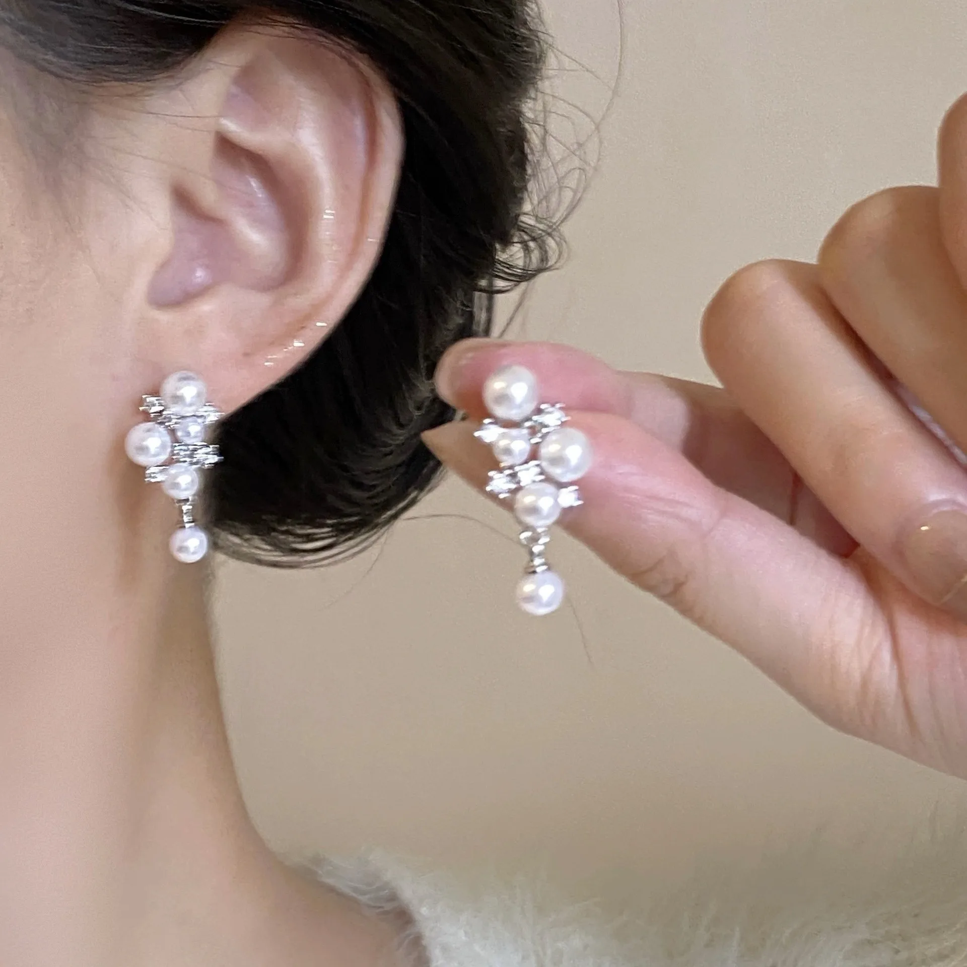 Zircon Geometric Pearl Earrings Autumn and Winter High-End Vintage Elegant Earrings Light Luxury Niche Temperament Earrings for Women