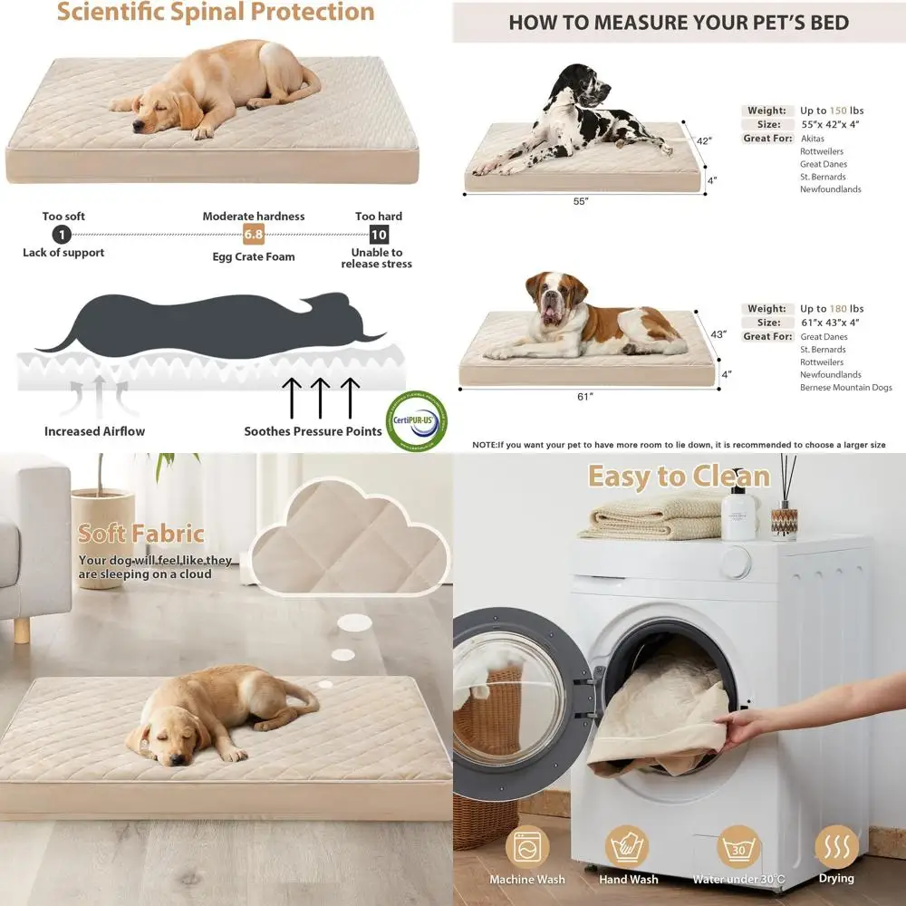 Large Orthopedic Dog Bed for Extra Large Dogs, Waterproof with Removable, Washable Cover, Multi-Quilted Crate Mattress for Dogs