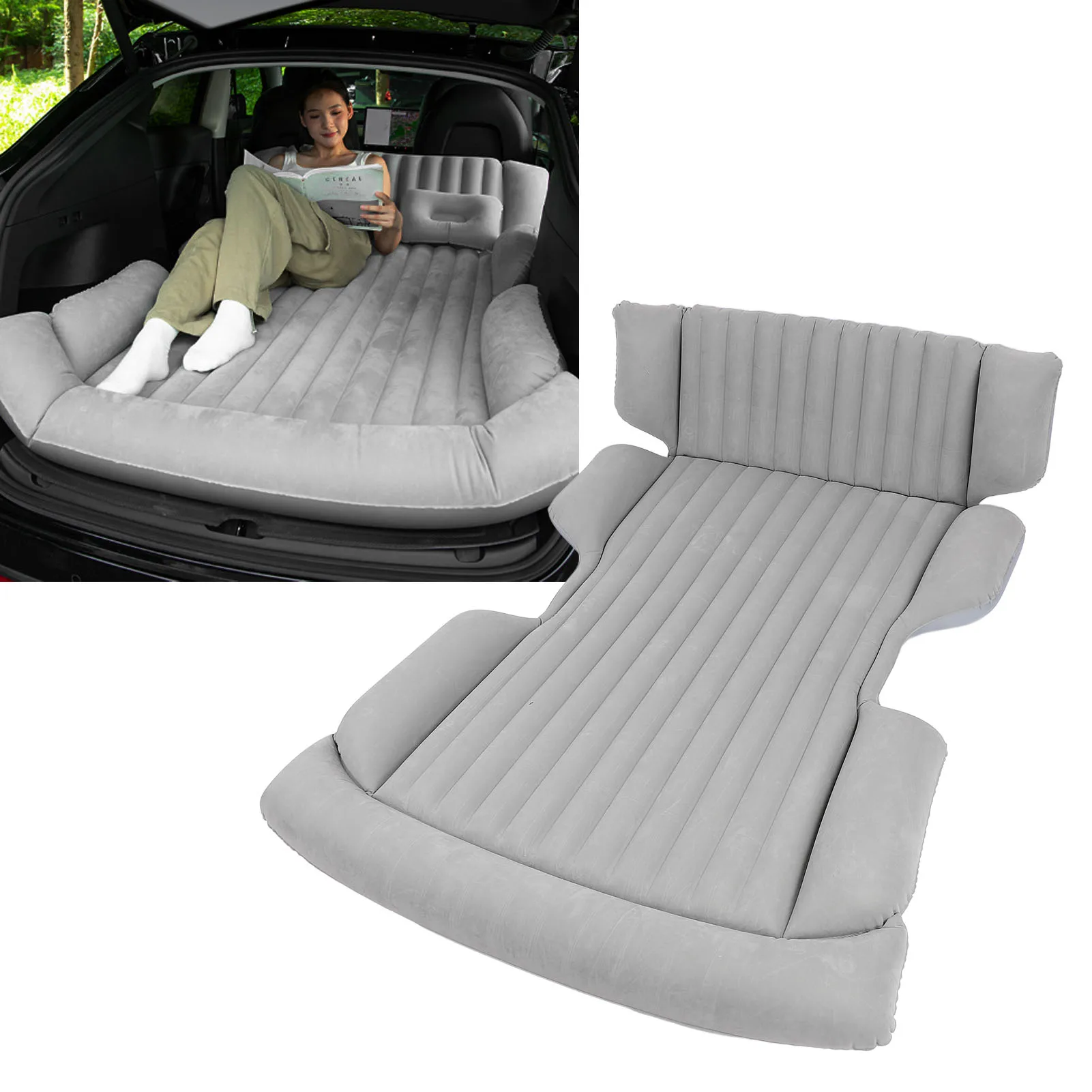 Car Travel Camping Bed SUV Air Mattress Thickened Flock Inflatable Car Sleeping Bed with 2 Support Pillars and Electric Pump