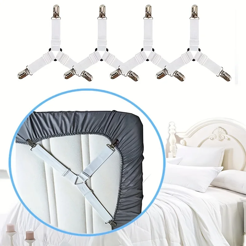 4 Triangular Bed Sheet Fasteners, Bed Sheet Clips, Adjustable Bed Sheet Straps, Mattress Clips, Suitable for Mattress Covers