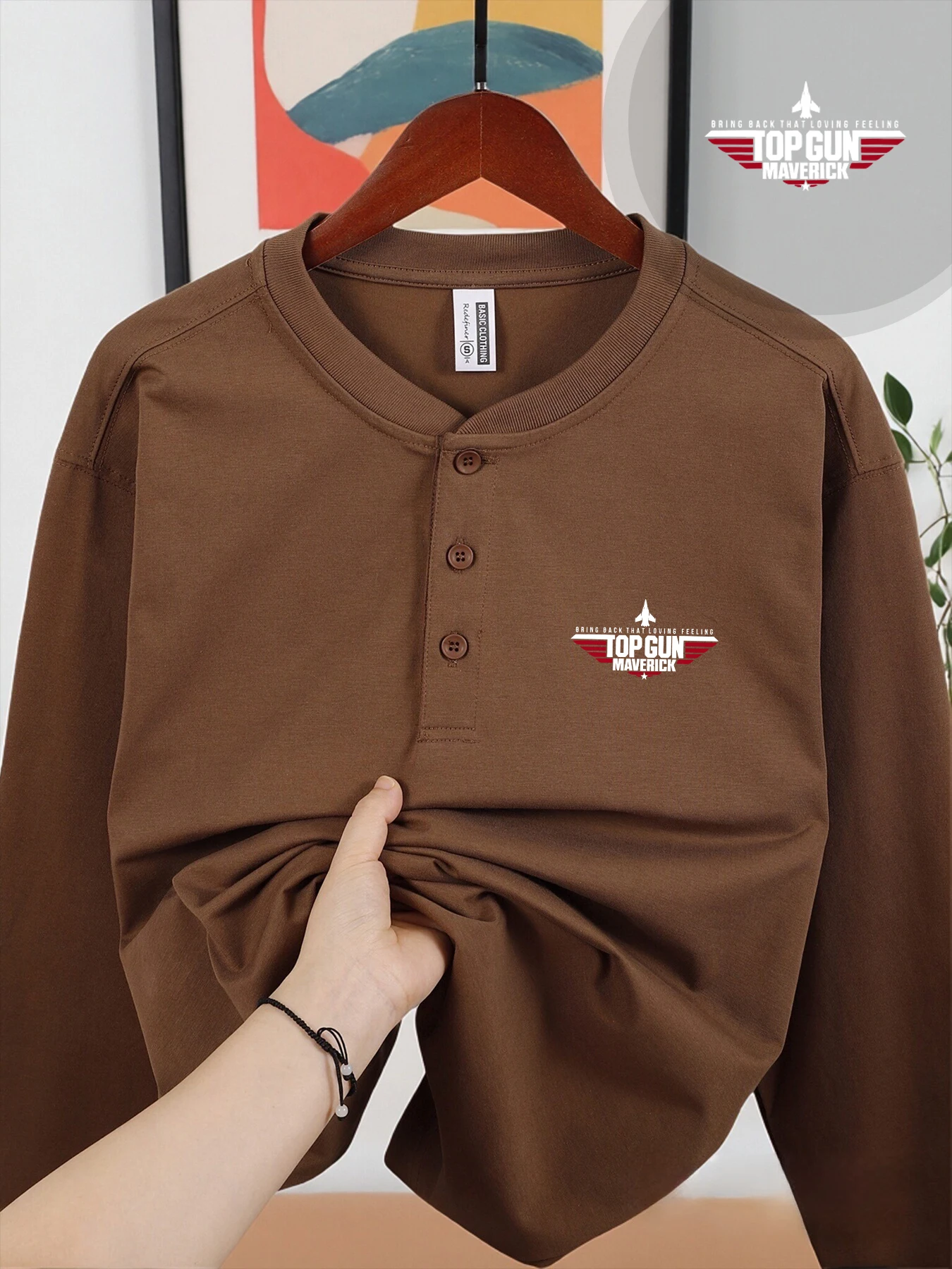 Top Gun Maverick Print Mens Henry Shirts Business High Quality Shirt Fashion Breathable Loungewear Autumn Casual Soft Tops