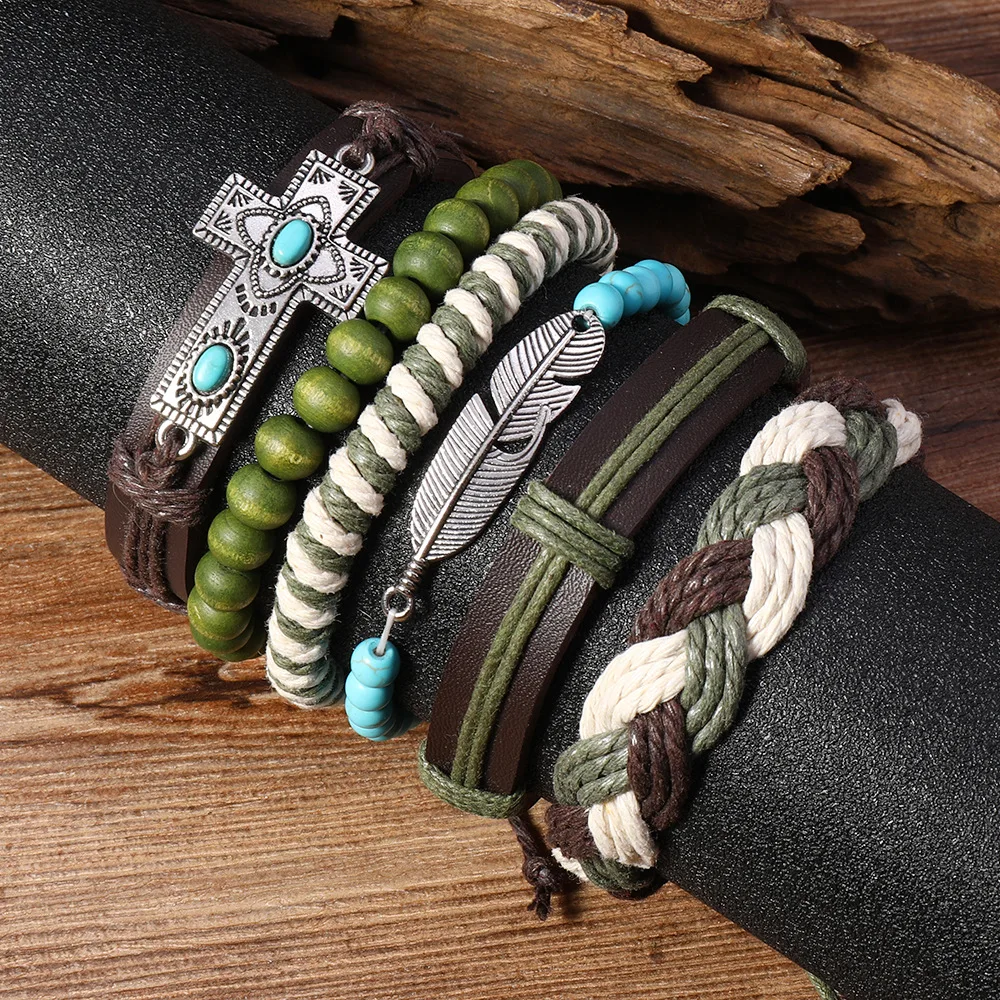 Ethnic Style Vintage Woven Leather Bracelet For Men Bohemian Cross Butterfly Life Tree Leather Braided Bracelets Gift For Friend