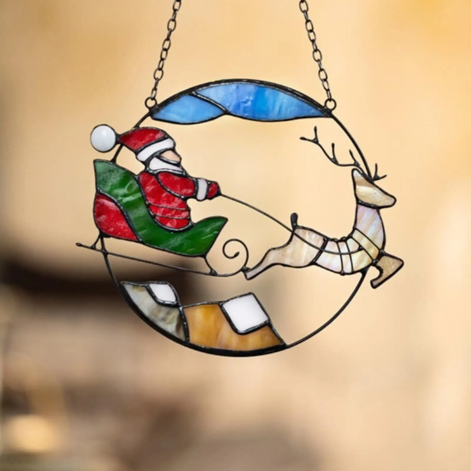 Sun Catcher Acrylic 2d Flat Bedroom Decoration Santa In Sleigh Reindeer Suncatcher For Home Kitchen Patio Outdoor Indoor