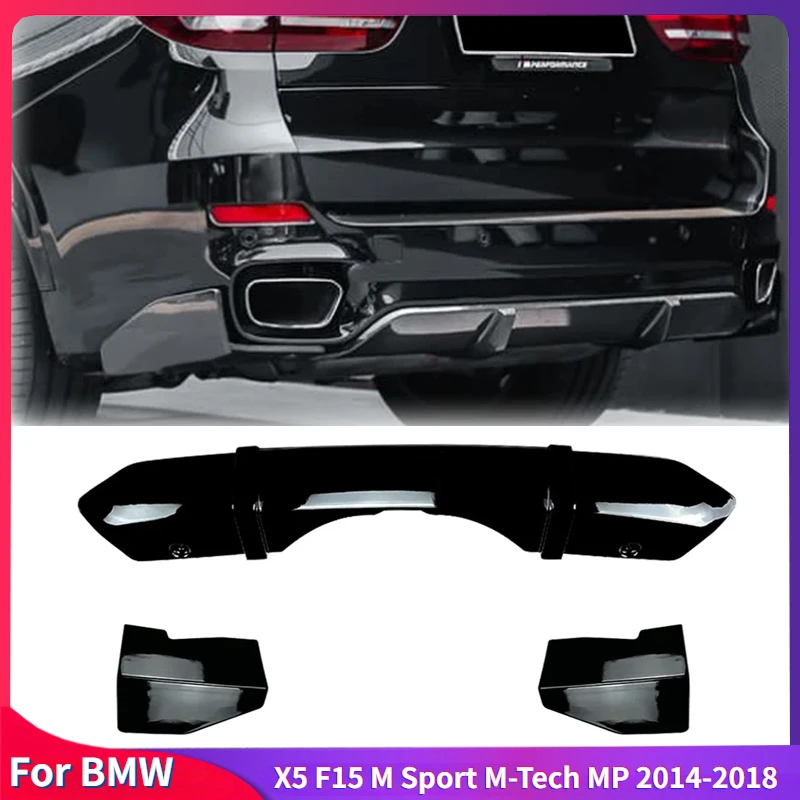 For BMW X5 F15 M Sport M-Tech MP 2014-2018 Rear Bumper Lip Diffuser Spoiler Side Splitter Cover ABS Gloss Black Carbon Fiber Kit