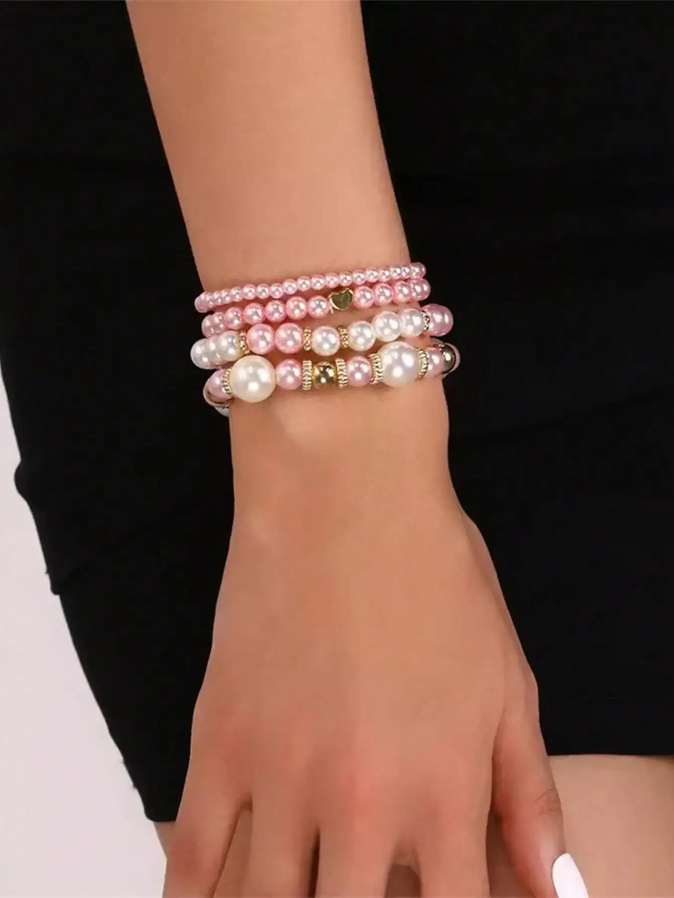 4-Piece Women’s Faux Pearl Bracelet Set – Elegant Beaded Combination, Versatile for Parties, Dates & Daily Wear