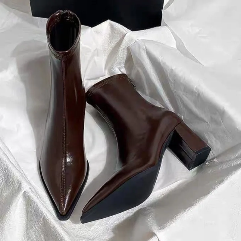 Suede Leather Pointed Toe Ankle Boots Side Zipper Block Chunky Heel Fashion Women's Short Boots Autumn Winter Black Solid Newest