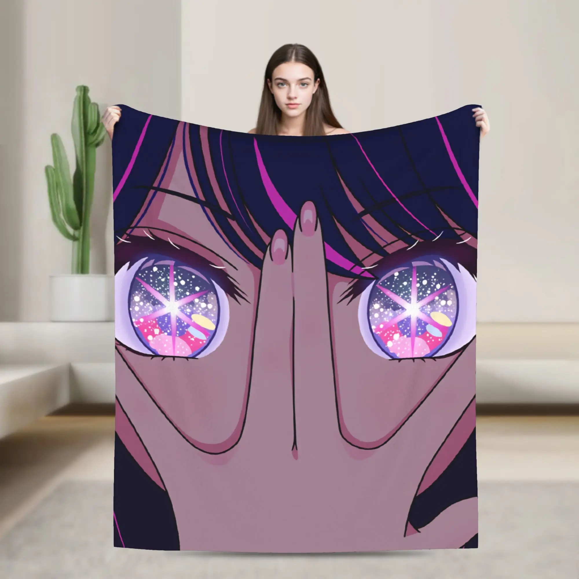 Warm Blanket Airplane Travel Anime Oshi No Ko Ai Hoshino Throw Blanket Flannel Bedspread For Couch Bed Sofa Bed Cover