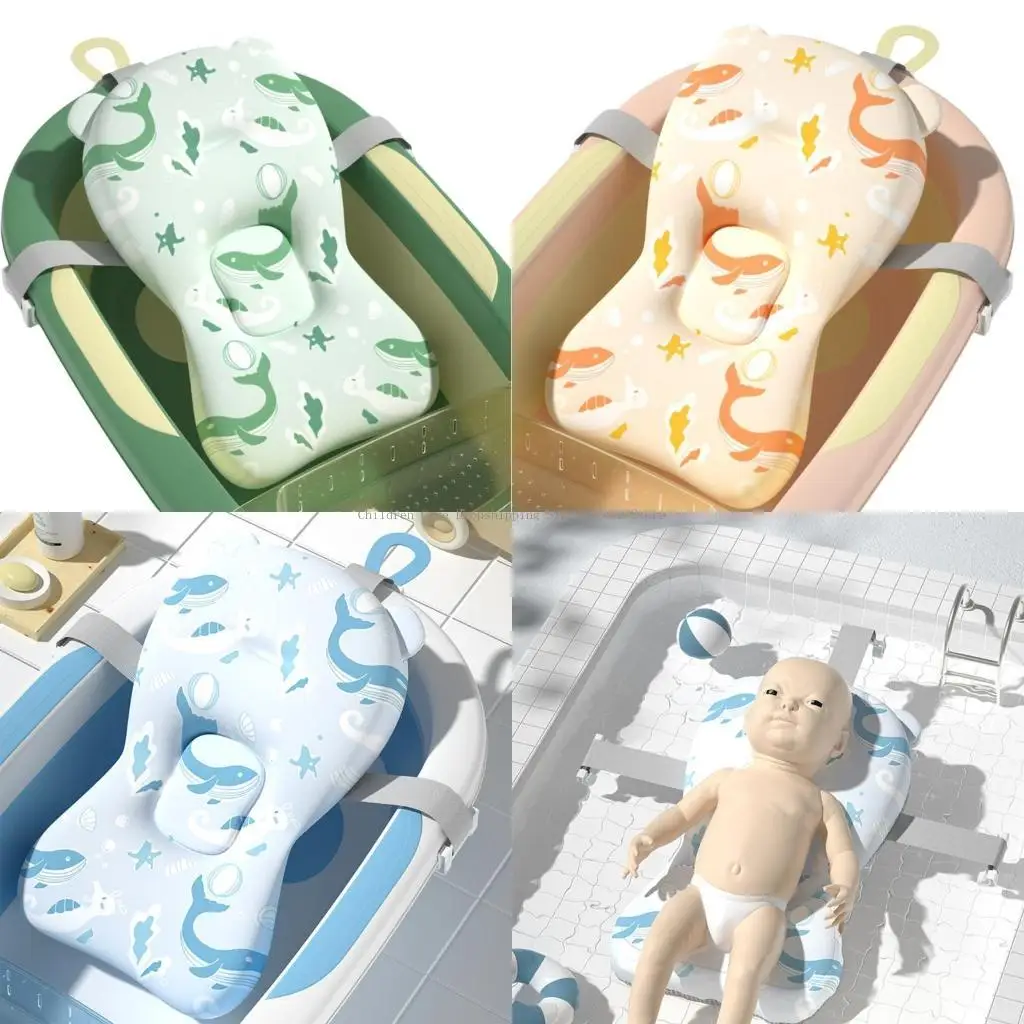 Newborns Bathtub Support Cushion Adjustable Baby Bath Pad Cartoon Ergonomic Design Infant Shower Bed Breathable