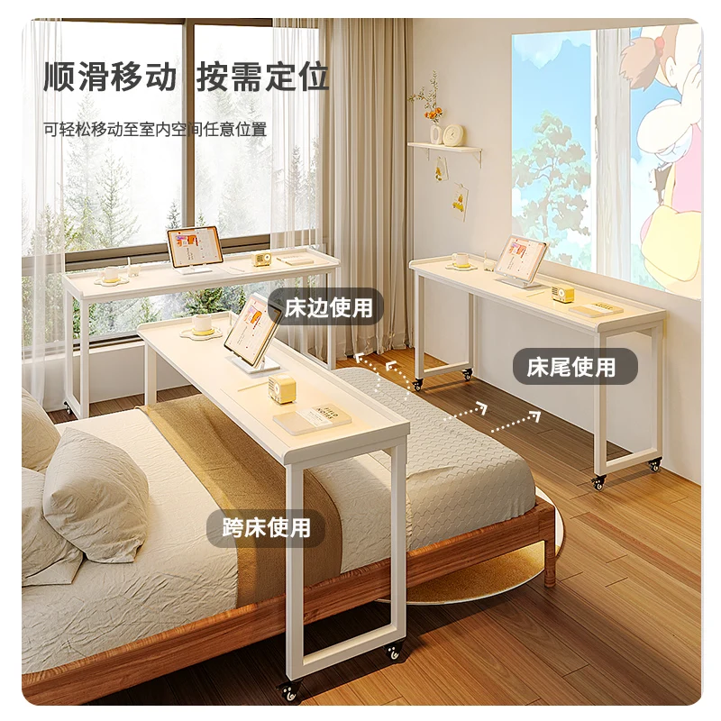 Cross bed table removable end of bed desk long table with drawers solid wood table bedroom bedside lift