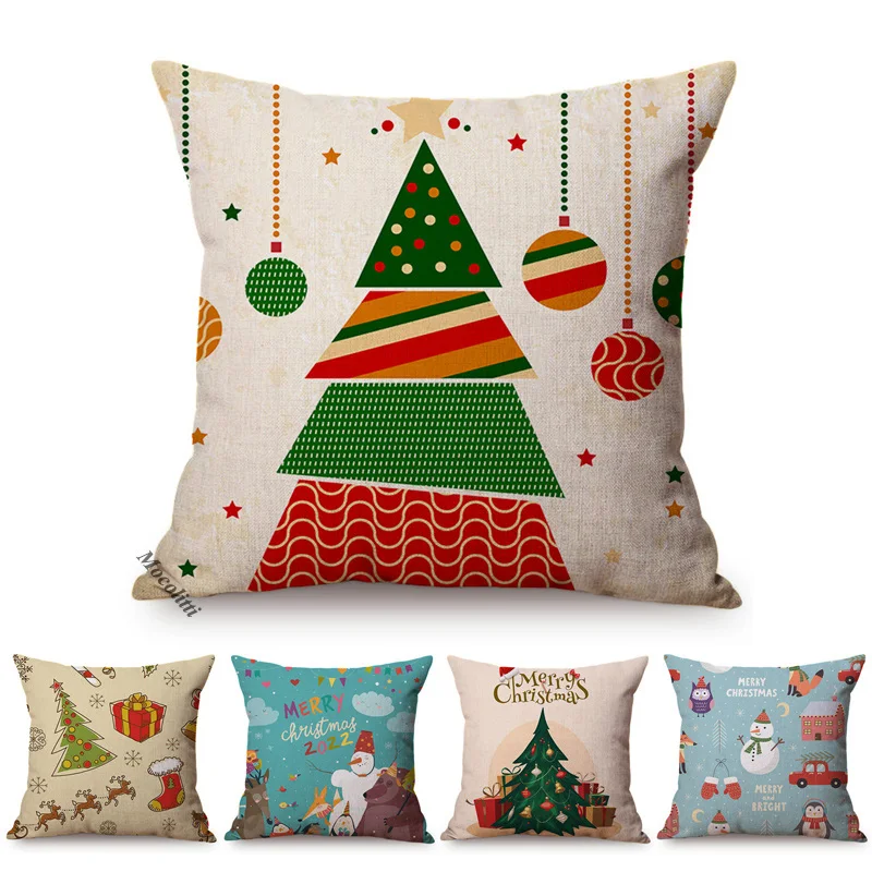 Cartoon Christmas Decorative Cushion Cover, Santa Claus, Christmas Tree Style, New Year Home Decor, Room, Bed Throw Pillow Cover