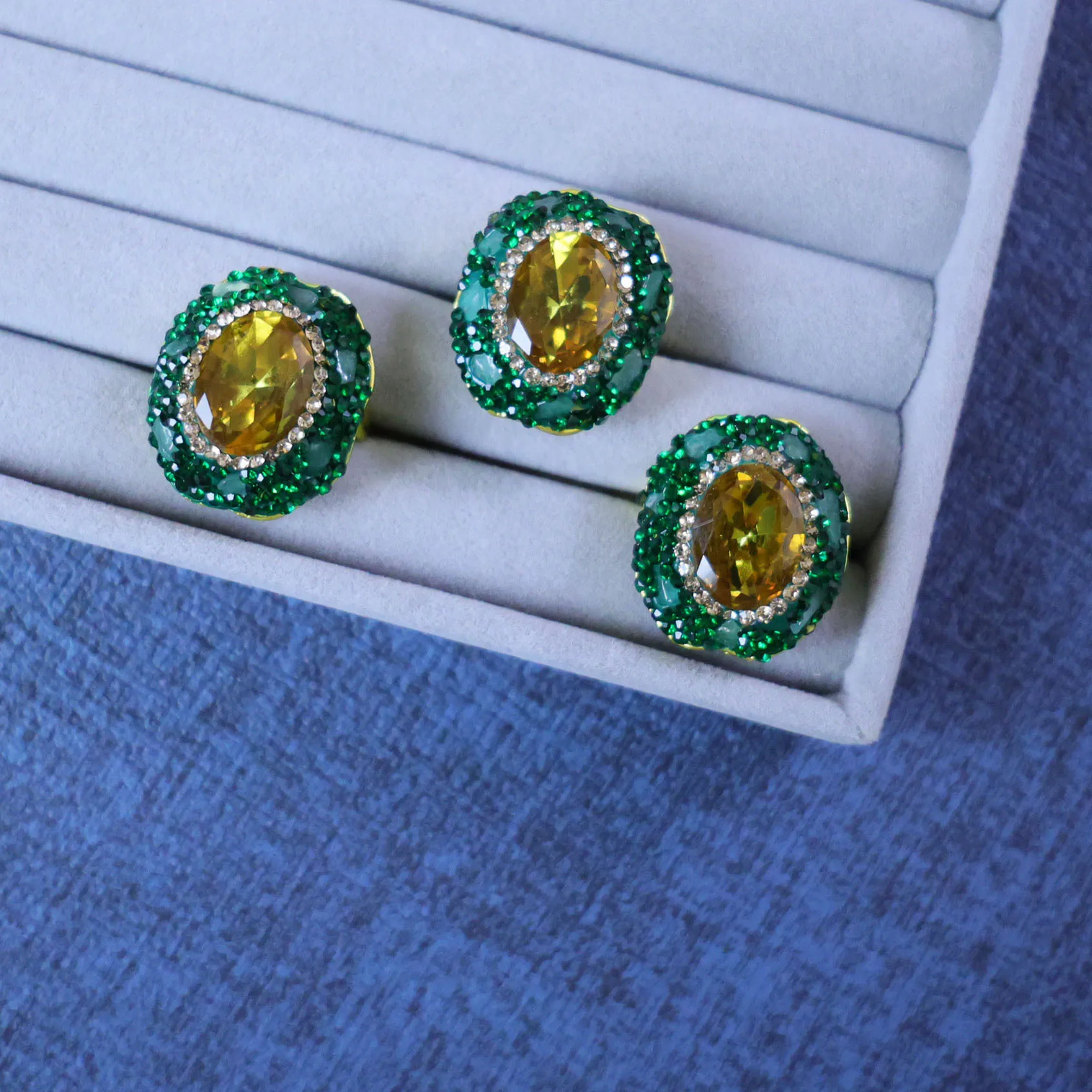 Turkey sultan stone green inlaid Dongling stone ring niche light luxury light-sensitive stone jewelry manufacturers wholesale