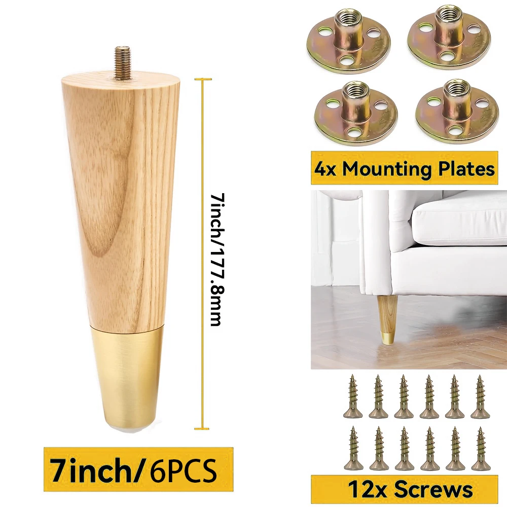 Solid wood furniture legs are 7 inches long. The set of 6/8 replacement wooden legs for the sofa is available. The legs for the