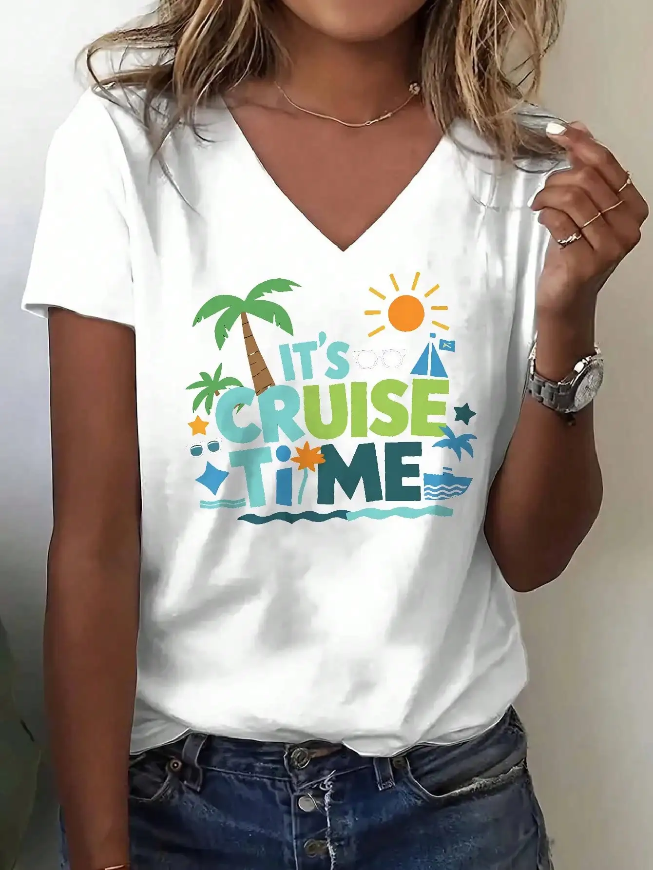 -65% Women's V-Neck Cruise Time Graphic T-Shirt for Summer Beach Vacations & Casual Outings https://www.rapidodeals.com/compare/detail/axs/1005010770270574?k=Holiday+Cruise from $28.11 See Details