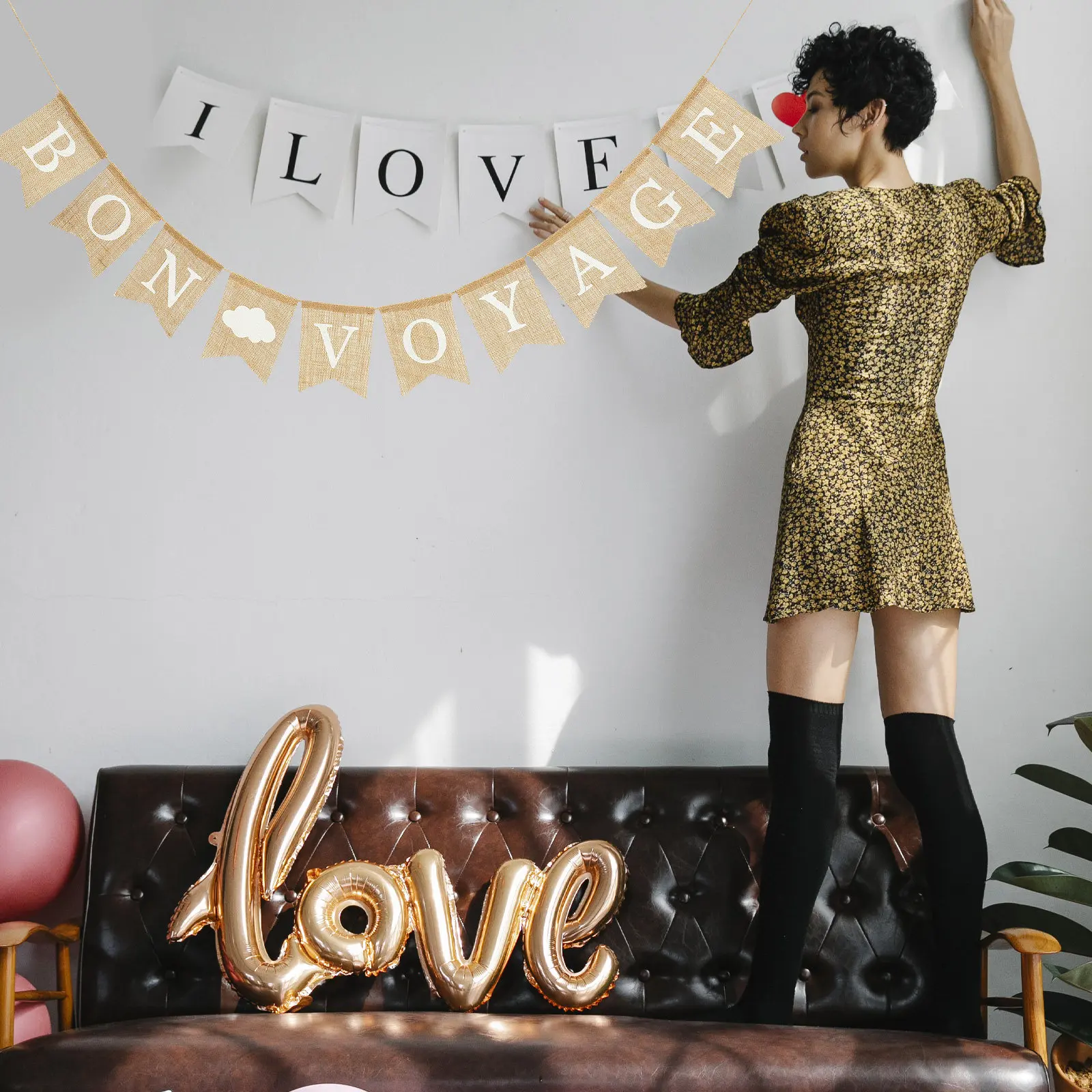 Rustic Burlap Voyage Banner for Travel Theme Party Decoration Nautical Cruise Farewell Retirement Moving Photo Booth