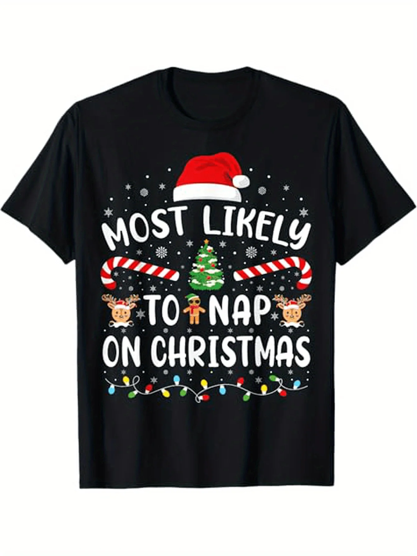 Christmas Favorite Nap-Themed Fun T-Shirt, Comfortable Crew Neck Cotton T-Shirt, Soft and Comfortable, Unisex, Perfect for Christmas Parties, Family Gatherings, and Holiday Relaxation~ Ideal Gift for Family And~Active Individuals