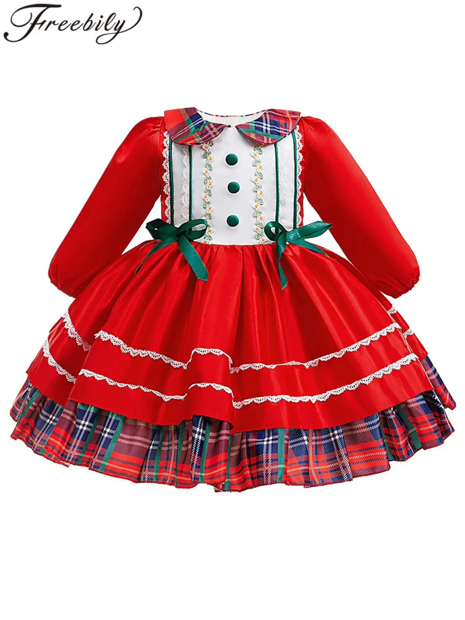 Girls Carnival Christmas Dress Cute Bow Long Sleeve Xmas Dresses Theme Party Christening Gown New Year Gift Princess Costume