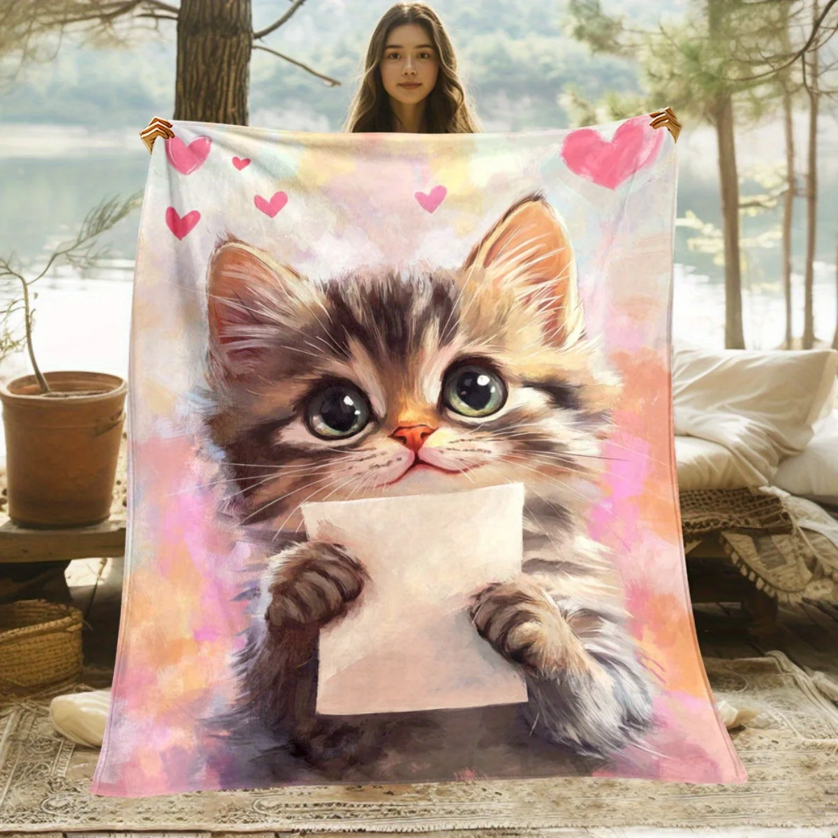 1 Cute cat-patterned flannel blanket - soft and warm, suitable for camping, sofas, beds and chairs, a perfect holiday gift