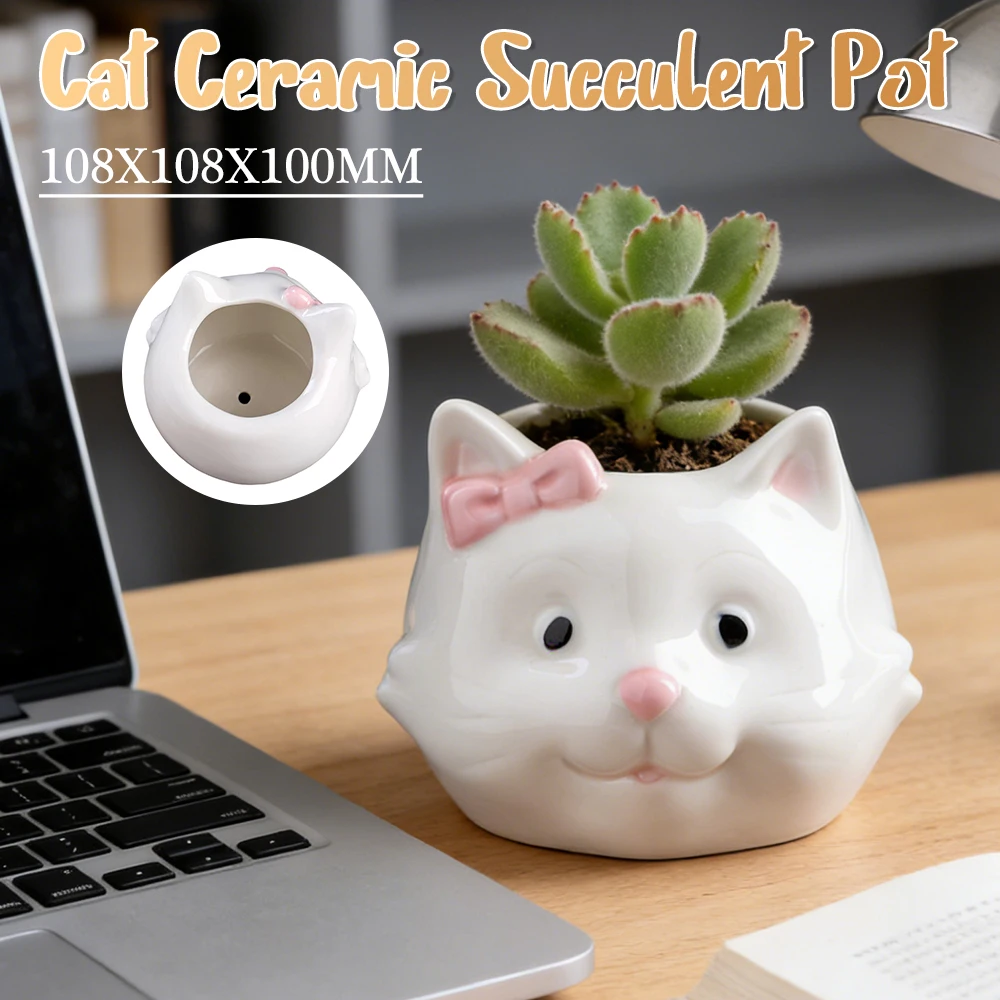Ceramic Cartoon Cat Succulent Pot Resin Bonsai Plant Holder Mini Creative Flowerpot for Home Office Desktop Garden Decor Supply