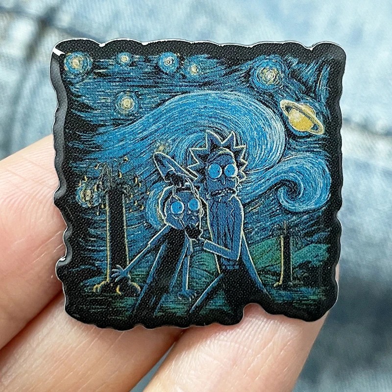 Starry Night Abstract Art Lapel Pin Brooch Classic Cartoon TV Van Gogh Painting Mash-up Badge Jewelry Gift